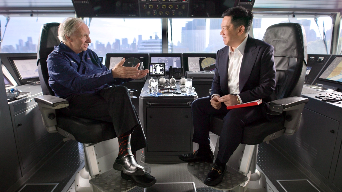 John Zhao, Chairman of CUSEF (right), and Ray Dalio, Founder of Bridgewater Associates and OceanX (left), attend the closing ceremony.